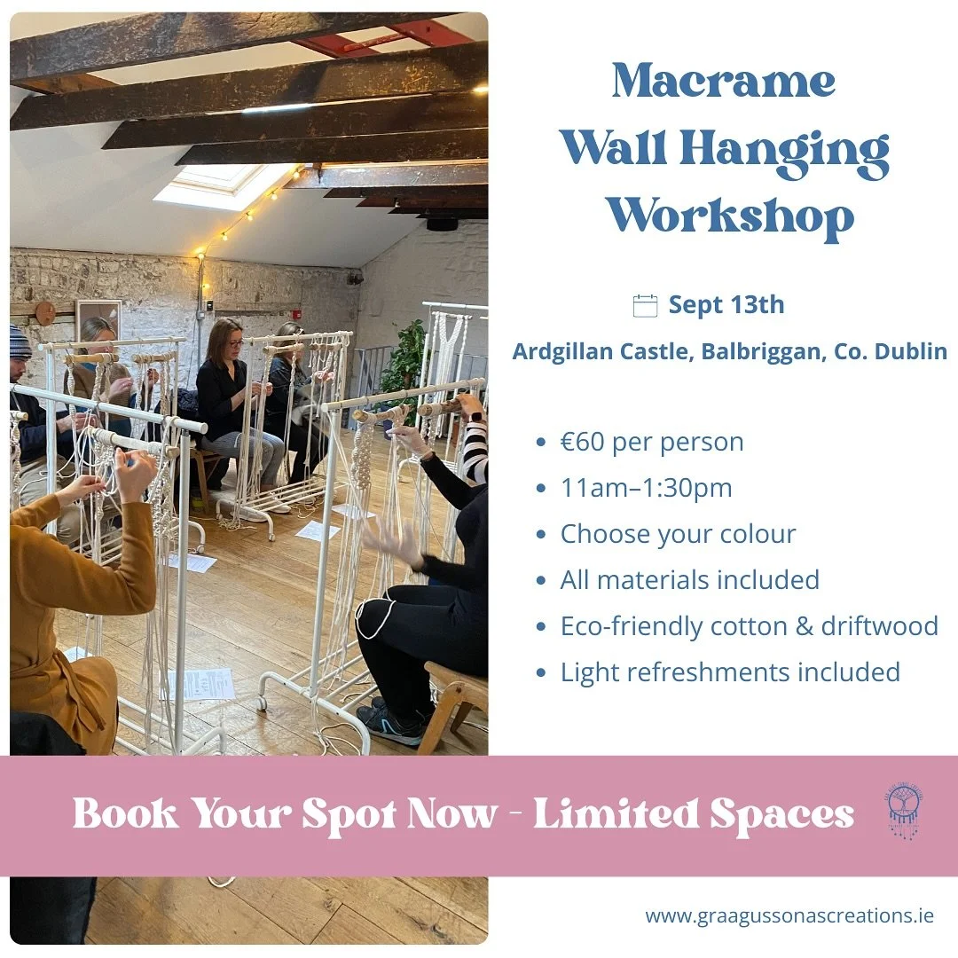 Macrame is a wonderful versatile craft to learn. In our 2.5hr workshops, we will guide you from start to finish on your piece. We will move through the workshop making our pieces together.